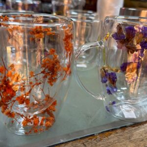 Taza Vidrio con Flores