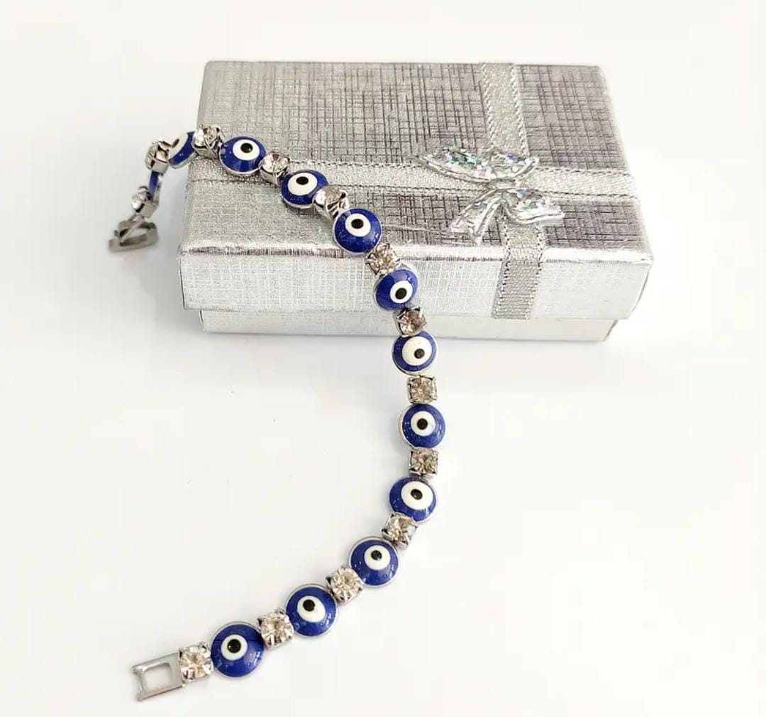 Pulsera de acero con ojito turco y strass